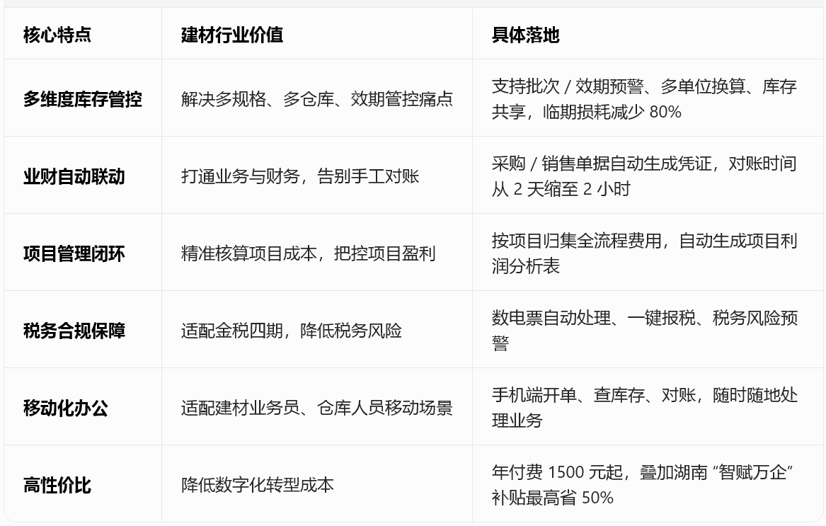 四、金蝶软件核心特点(建材行业专属)